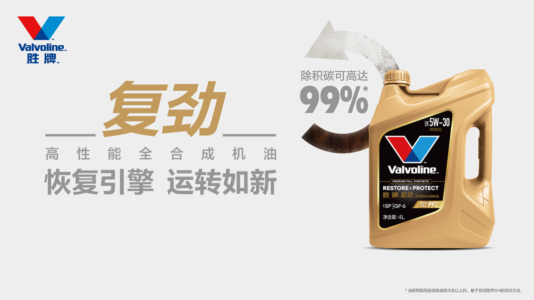 上海2025年5月29日/美通社/ -- 勝牌?全球(Valvoline? Global Operations)—— 汽車及工業(yè)解決方案創(chuàng)新者近日宣布,旗下高端汽機(jī)油產(chǎn)品"復(fù)勁"系列迎來(lái)包裝煥新升級(jí),通過(guò)創(chuàng)新設(shè)計(jì)與先進(jìn)潤(rùn)滑技術(shù)的結(jié)合,為中國(guó)消費(fèi)者帶來(lái)兼具美學(xué)價(jià)值與卓越性能的養(yǎng)護(hù)解決方案。